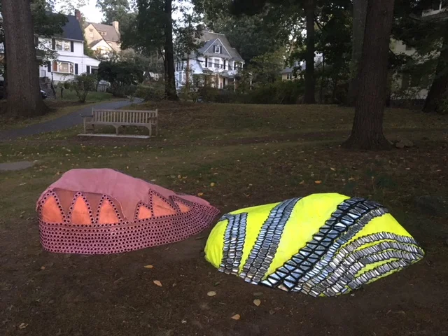 “The Heart of Greenpoint: Chalk Quilting Bee” is an action, a convening, a happening centered around process, play and mindfulness. It is an act of celebration, play, a passage and marking of time, a tribute to the park which served as an anchor and respite for the community during the pandemic. The rules of engagement are simple. Using traditional sidewalk chalk, all community members are invited to chalk the pavilion hexagons with bright colors to contrast with the surrounding greenery. The aim is to fill up as much of the hexagons as possible with vibrant colors. The project is akin to a large-scale quilting bee. Hexagons provide great geometric design possibilities. In numerous cultures, hexagons are symbolic of universal coherence, harmony, balance. They are found in beehives and are the most structurally stable shape for load distribution. They are utilized in cell phone towers to maximize surface area with no overlapping shapes. These concepts of stability and balance resonate with the project. Individual actions accumulate to showcase each participant’s contribution to the collective effort. It is my hope that the community’s gestures radiate outward and a memory of the experience remains, even whilst the colors wash and fade away. All are invited to participate.